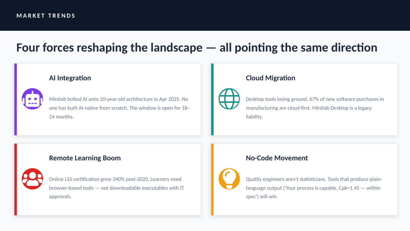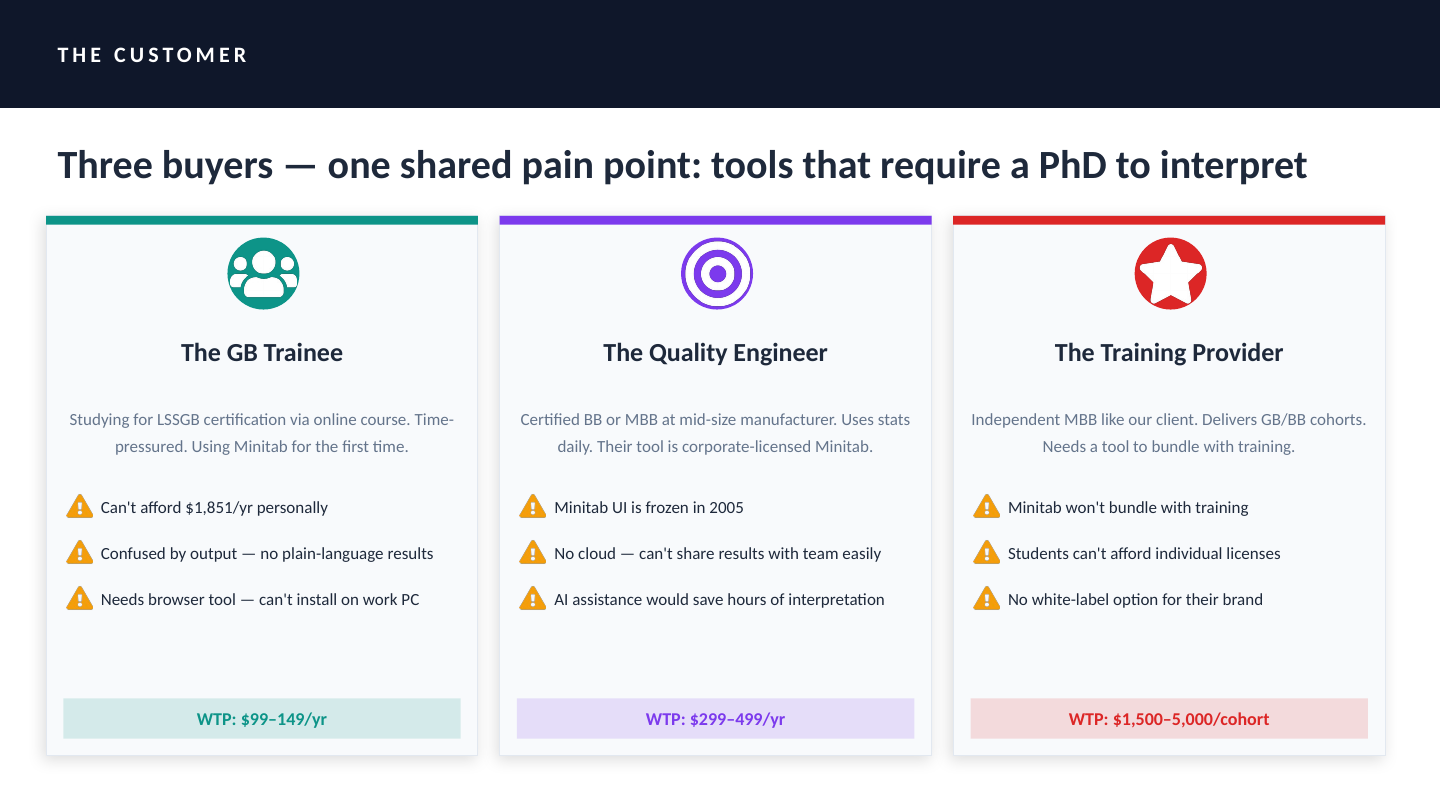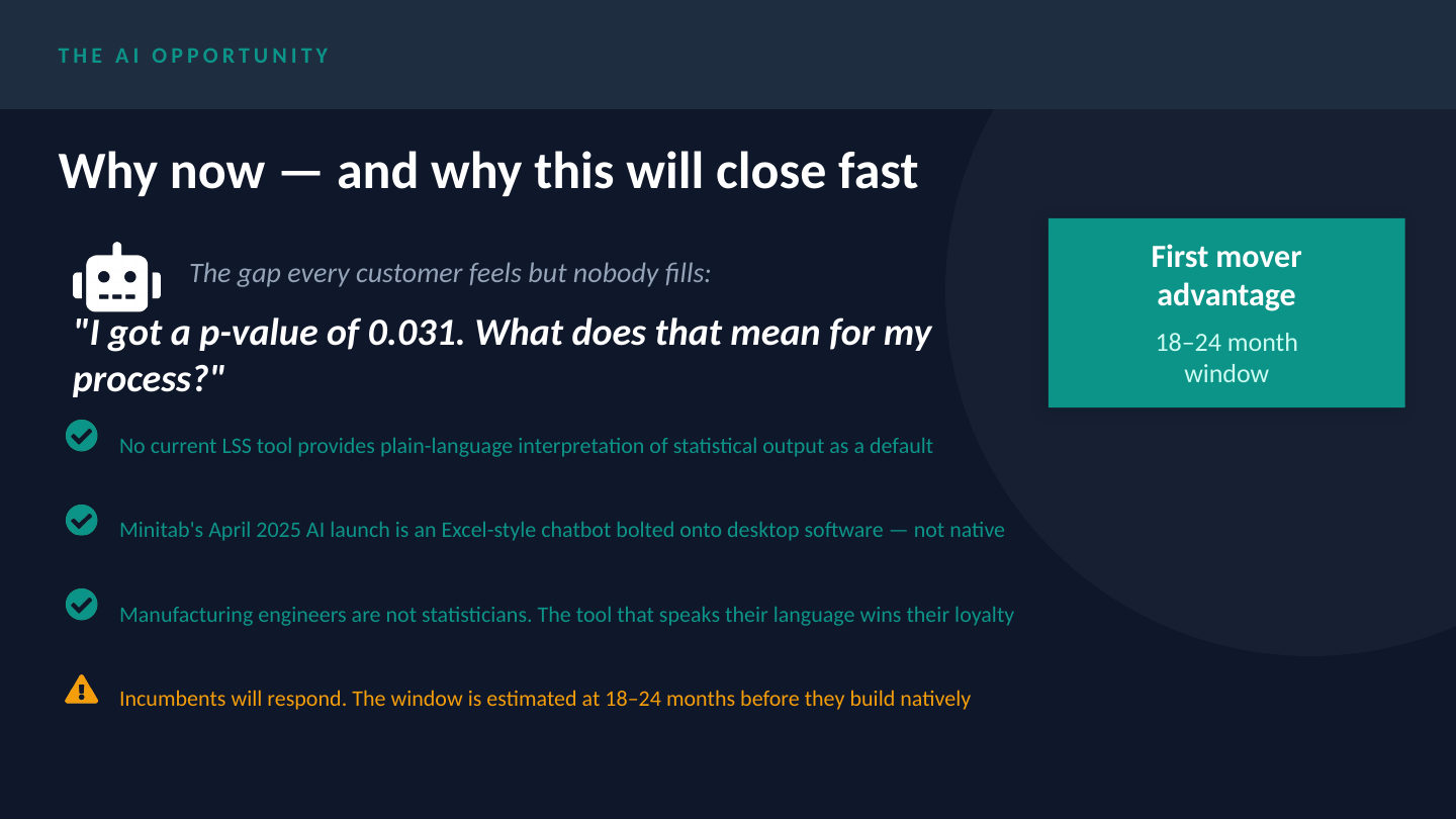“Is there a defensible, monetizable market opportunity for a new LSS statistical analysis software — and if so, what does the winning product and strategy look like?”